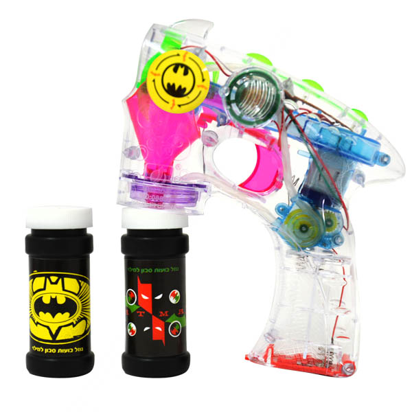 אקדח בועות סבון + 2 בקבוקי סבון נוזלי של המותג באטמן.