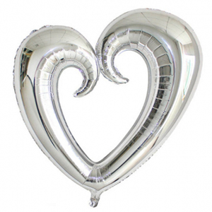 בלון מיילר בצורת לב בצבע כסף.