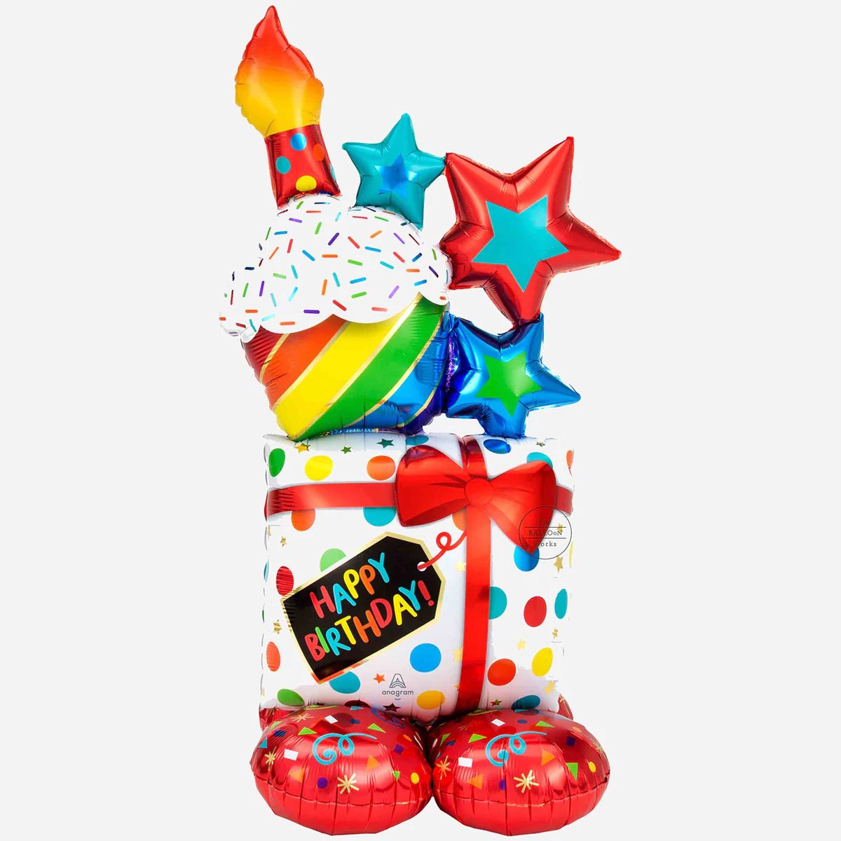 בלון רצפה 55 אינטש בצורת עוגת יום הולדת לניפוח עצמי.