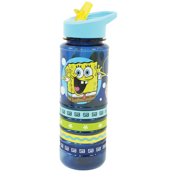 בקבוק פלסטיק טריטן עם צמידים מגומי של המותג בובספוג.