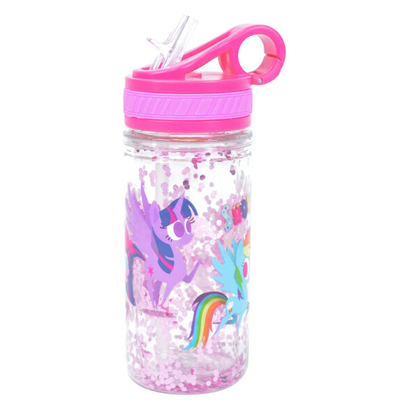 בקבוק פלסטיק דופן כפולה עם נצנצים של המותג הפוני הקטן שלי.