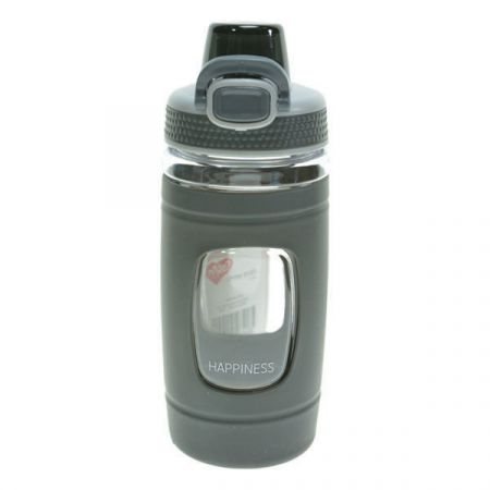 בקבוק פלסטיק עם כיסוי סיליקון ידית אחיזה בצבע שחור.