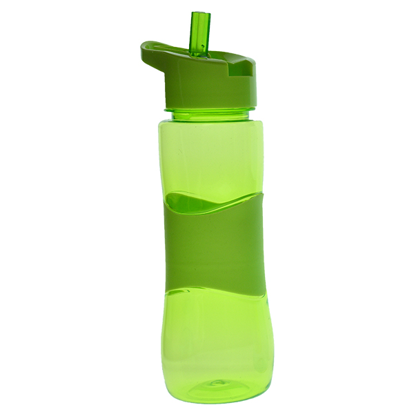 בקבוק שתייה עם חבק סיליקון בצבע ירוק.