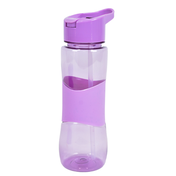 בקבוק שתייה עם חבק סיליקון בצבע סגול.