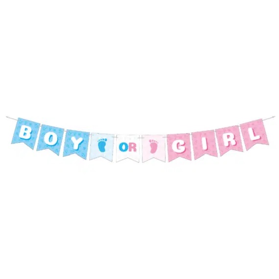 דגלונים של גילוי מין העובר בצבעים כחול וורוד.