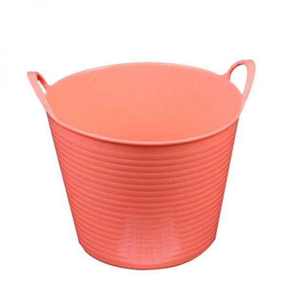 דלי פלסטיק 2 ידיות בצבע ורוד.