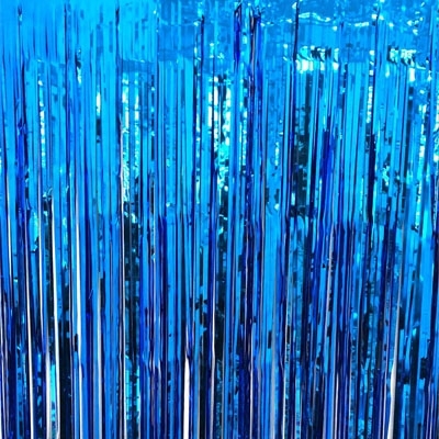 קישוט תליה וילון ופרנזים בצבע כחול מטאלי.
