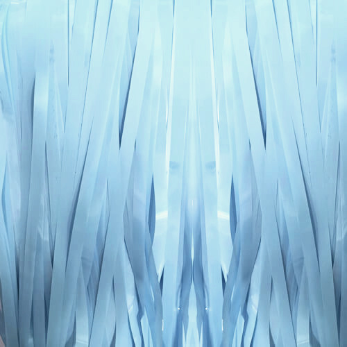 קישוט תליה וילון ופרנזים בצבע תכלת.