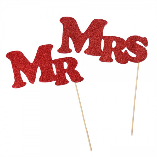זוג מקלות צילום Mr & Mrs – אדום נוצץ