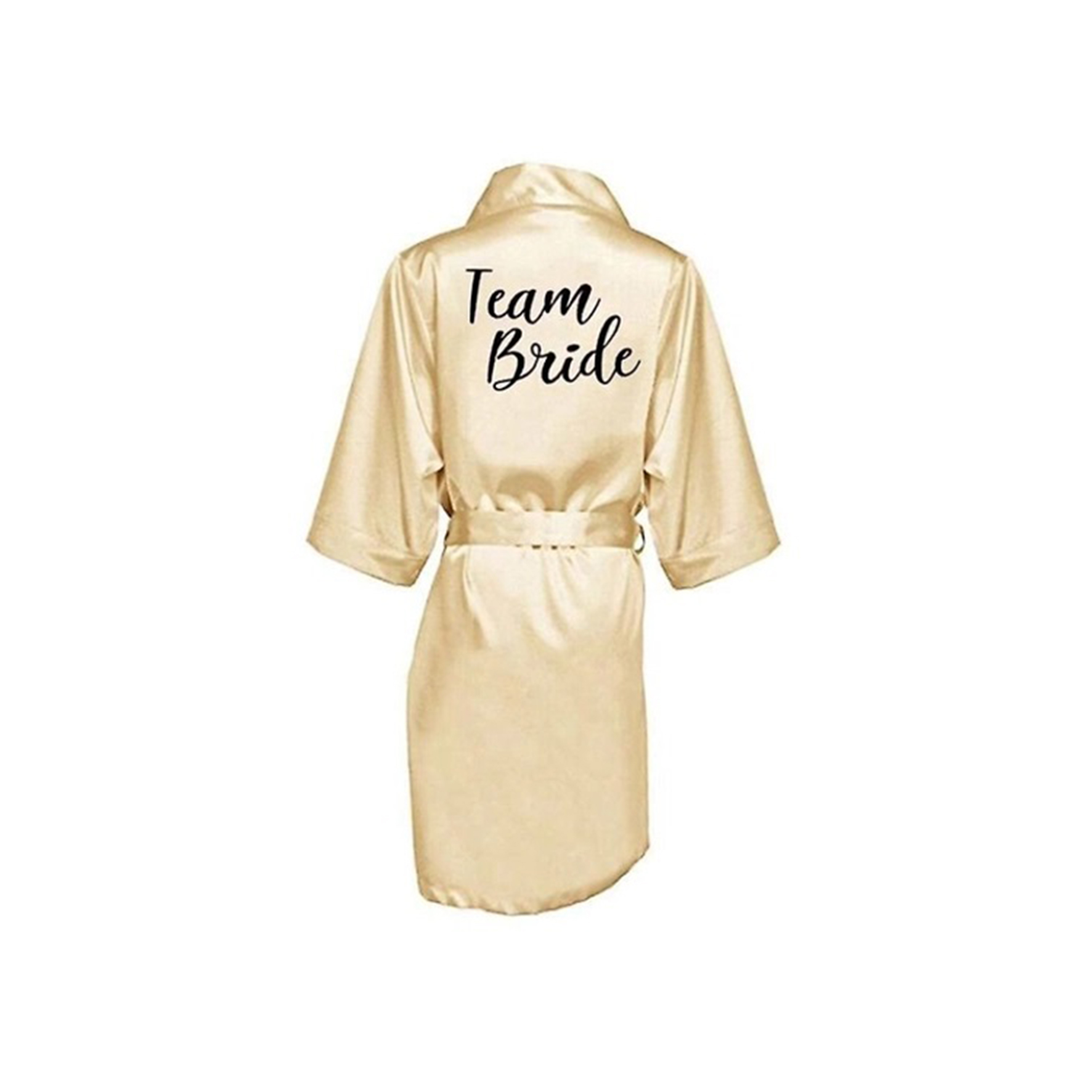 חלוק עם הכיתוב Team Bride בצבע שמפנייה למסיבת רווקות.