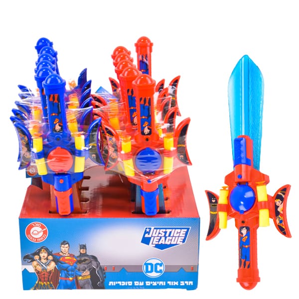 חרב אורות וחיצים עם סוכריות של המותג ליגת הצדק.