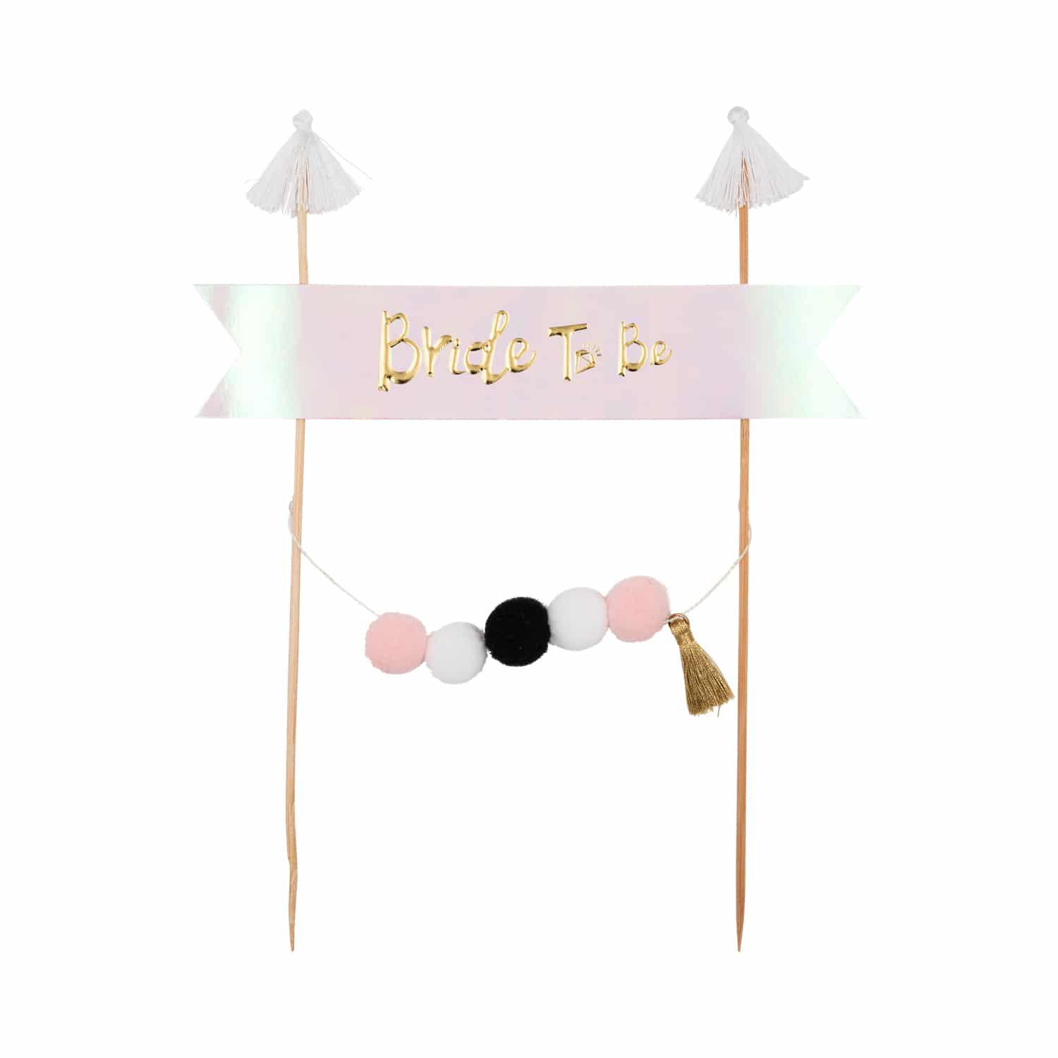 טופר עוגה למסיבת רווקות עם הכיתוב Bride To Be בצבע לבן פנינה.