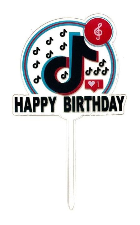 טופר פלסטיק עם הכיתוב Happy Birthday של המותג טיקטוק.