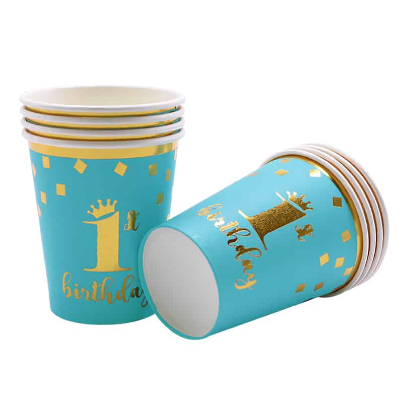 כוסות נייר לגיל שנה בצבע כחול לבן.