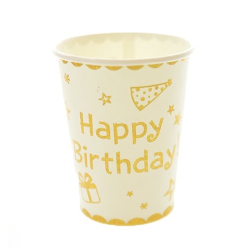 כוסות נייר עם הכיתוב Happy Birthday בצבע זהב לייזר.