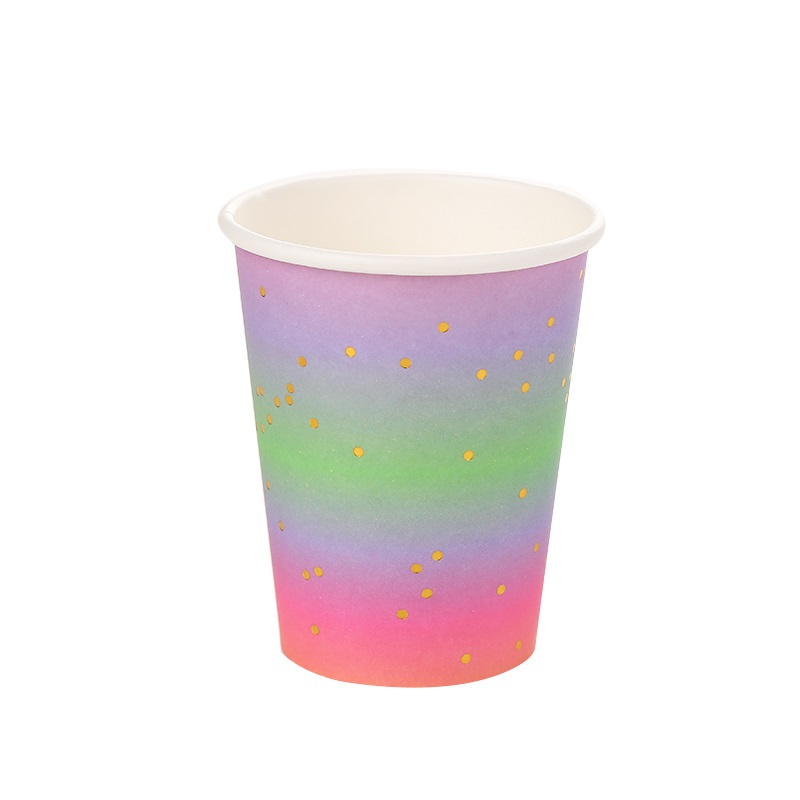 כוסות נייר צבעוניות נקודות זהב מטאלי.