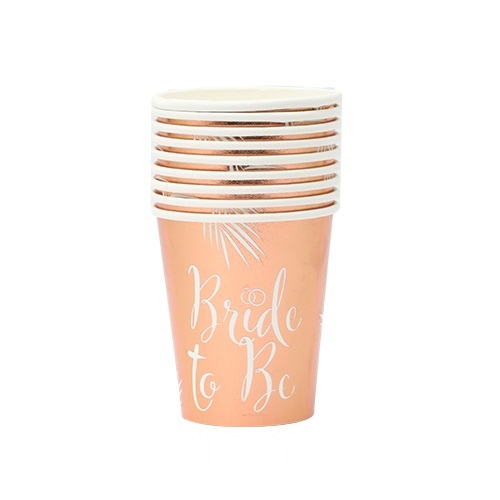 כוסות נייר עם הכיתוב BRIDE TO BE למסיבת רווקות.