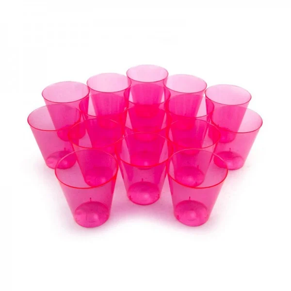 כוסות שאטים פלסטיק בצבע ורוד למסיבת רווקות.
