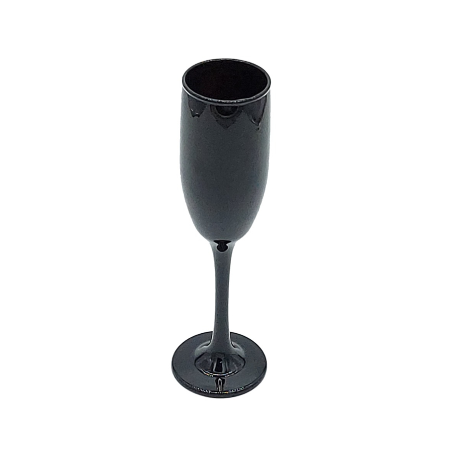 כוס שמפניה זכוכית בצבע שחור.