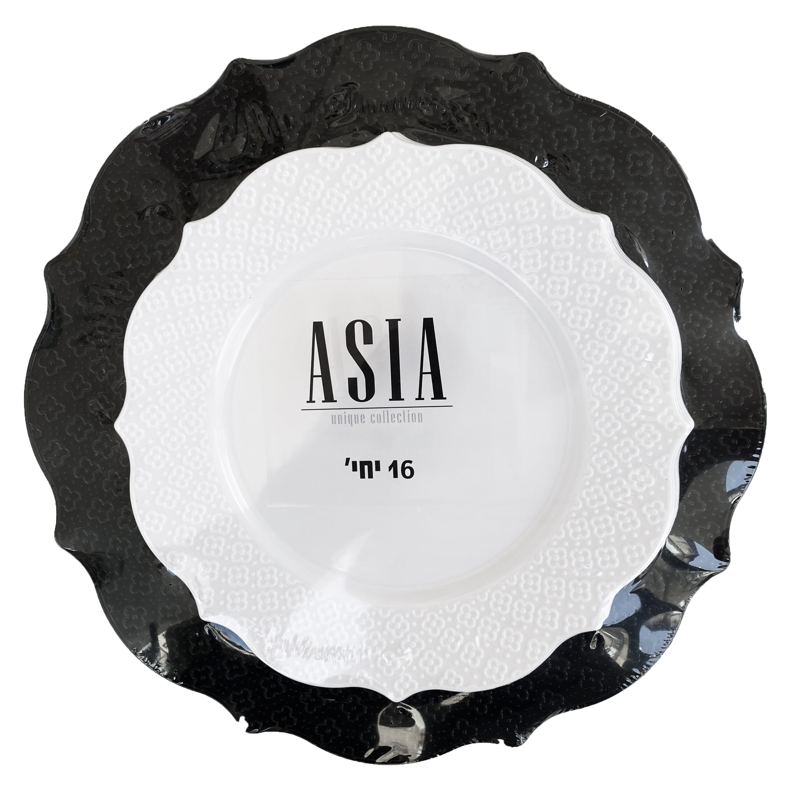 מארז סט 16 צלחות פלסטיק דגם אסיה בצבעים שחור ולבן.