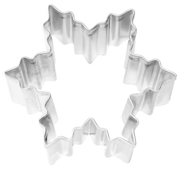 3 חותכני עוגיות בצורת פתית שלג בגדלים שונים.
