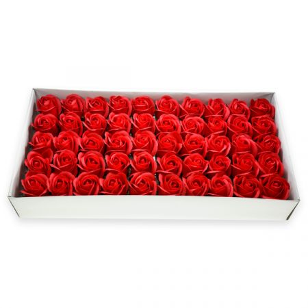 מארז המכיל 50 ראשי פרחי סבון לקישוט בצבע אדום.