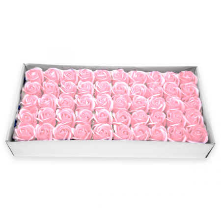 מארז המכיל 50 ראשי פרחי סבון לקישוט בצבע ורוד בהיר.