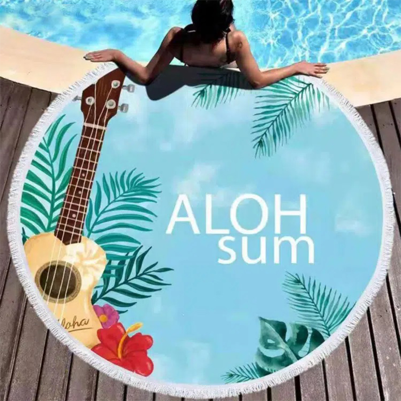 מגבת חוף עגולה בעיצוב טרופי לבריכה / לים.
