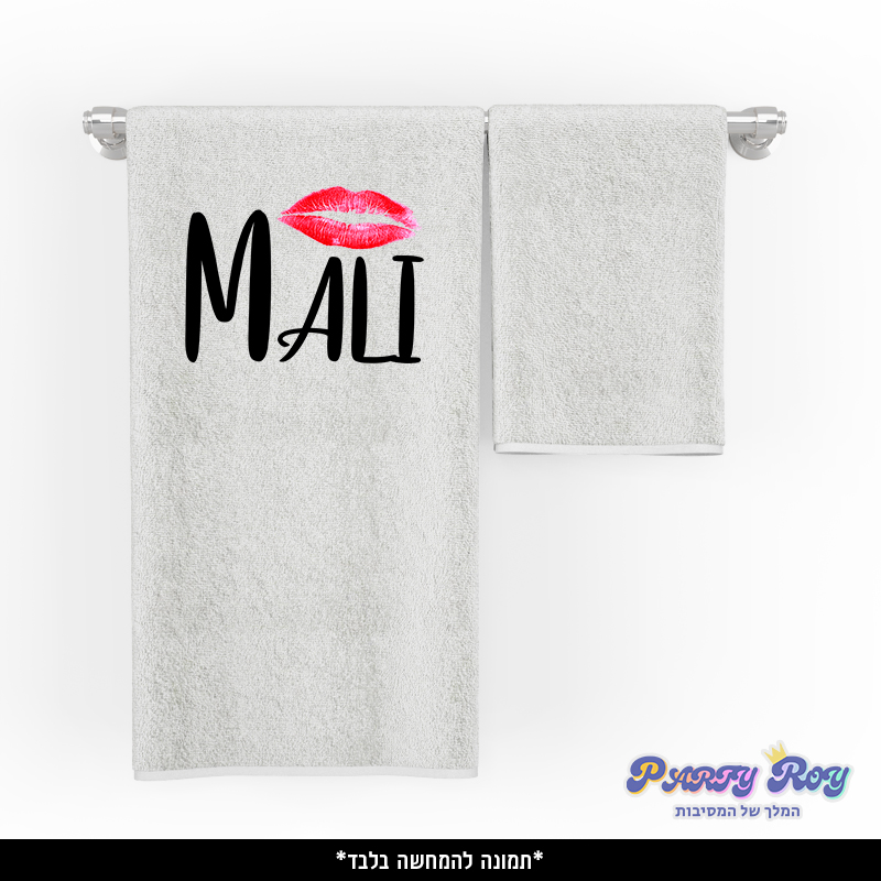 מגבת מודפסת במיתוג אישי ובעיצוב שפתיים.