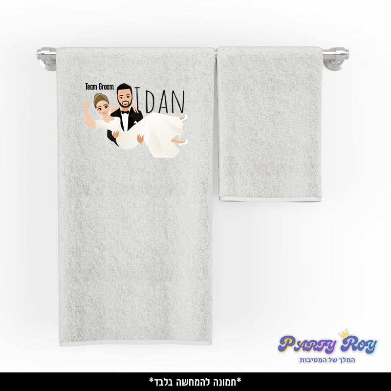 מגבת מודפסת במיתוג אישי ובעיצוב TEAM GROOM.