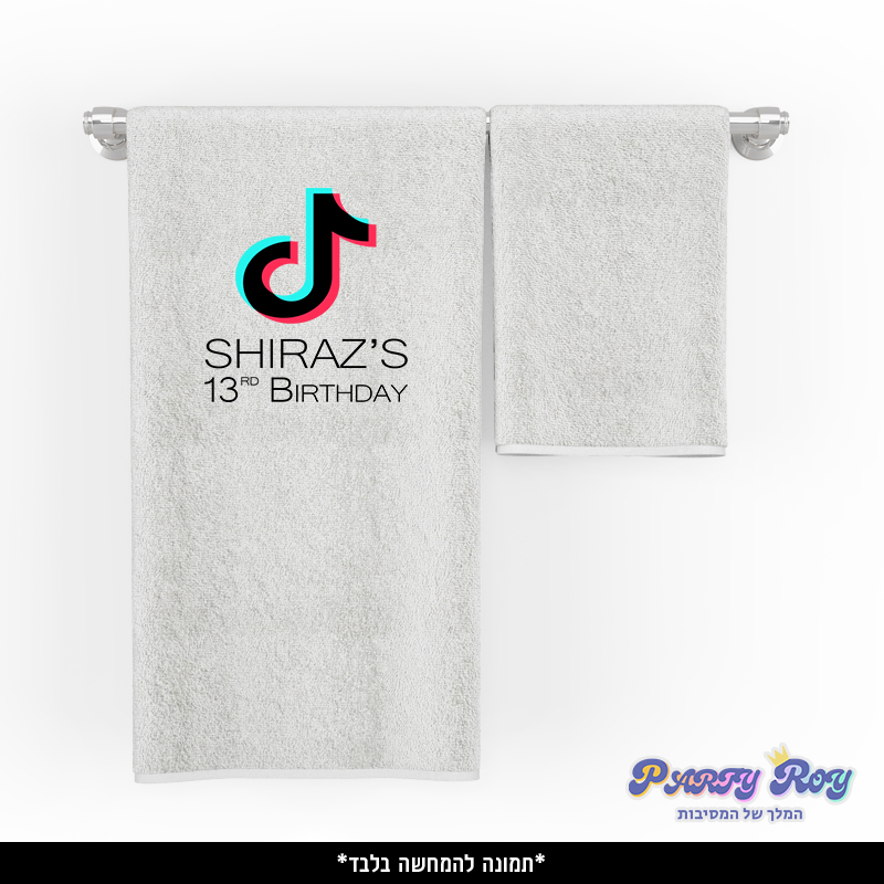 מגבת מודפסת במיתוג אישי ובעיצוב TIK TOK.