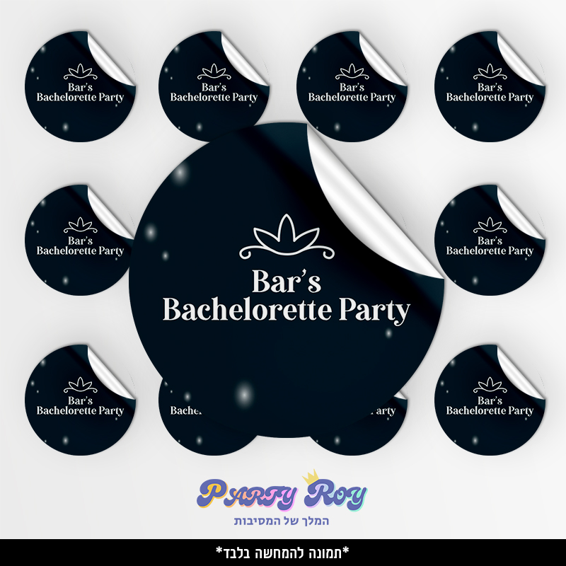 מדבקות עגולות במיתוג אישי ובעיצוב רווקות שחור כסף.