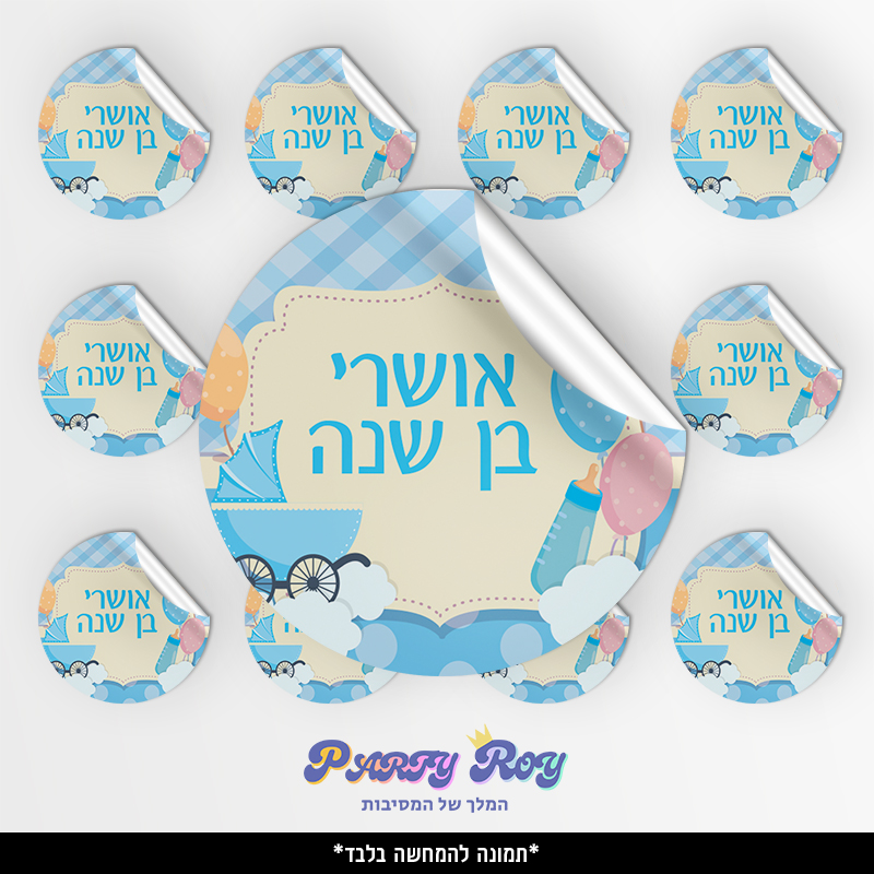 מדבקות עגולות במיתוג אישי ובעיצוב תינוק בן שנה.
