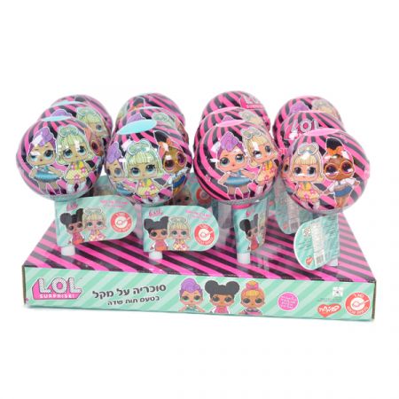 מיני פופ סוכריה על מקל עם כדור של המותג LOL.