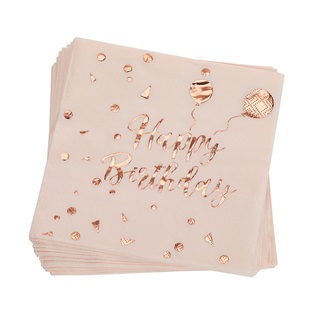 מפיות נייר עם הכיתוב Happy Birthday בצבעים ורוד ורוז גולד.