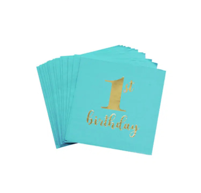 מפיות נייר לגיל שנה בצבע תכלת לבן.
