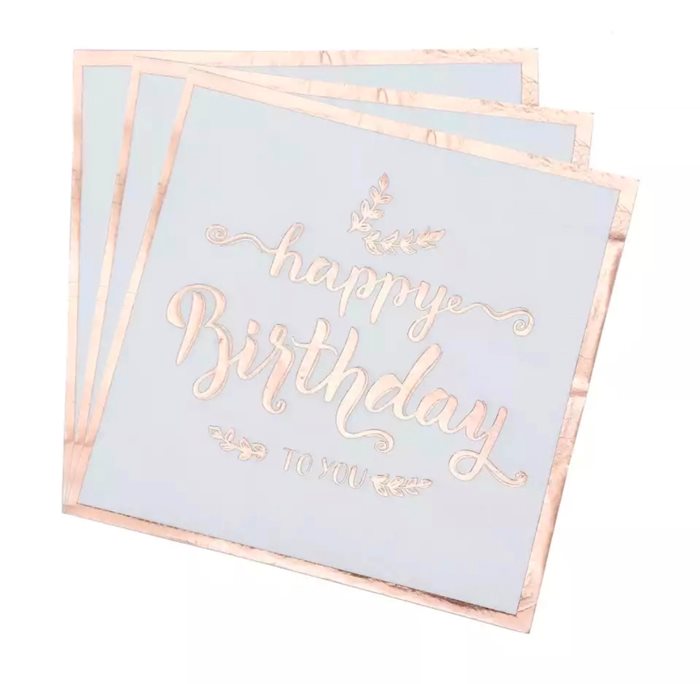 מפיות נייר עם הכיתוב Happy Birthday To You בצבע רוז גולד.