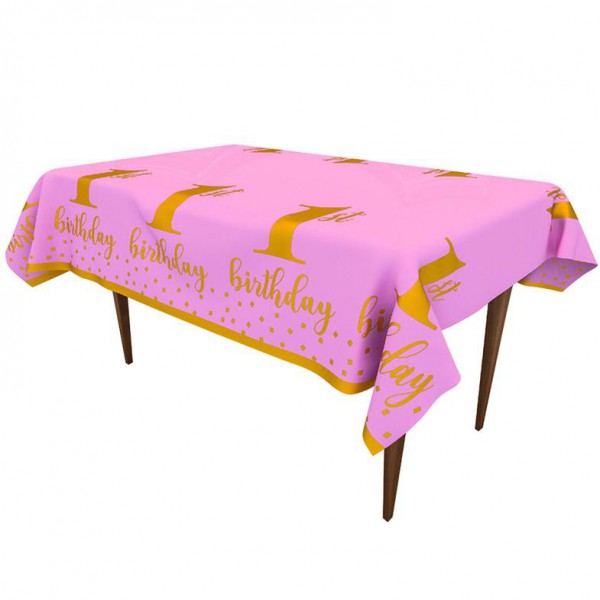 מפת שולחן חד פעמית לגיל שנה בצבע ורוד לבת.