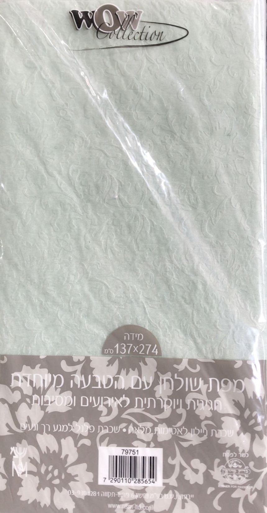 מפת שולחן עם הטבעה מיוחדת בצבע ירוק מנטה.