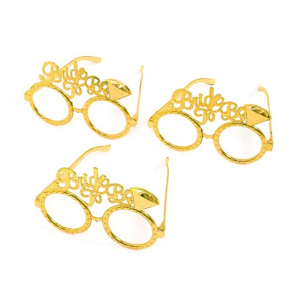 משקפיים עם הכיתוב BRIDE TO BE בצבע זהב למסיבת רווקות.