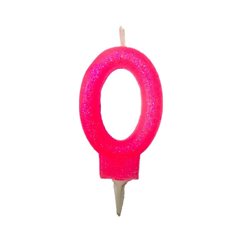 נר יום הולדת של המספר 0 בצבע ורוד.