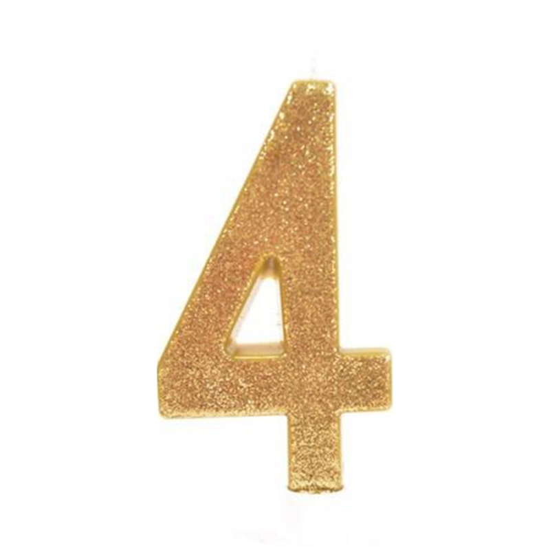 כמות של נר יום הולדת ענק מספר 4 - זהב נוצץ