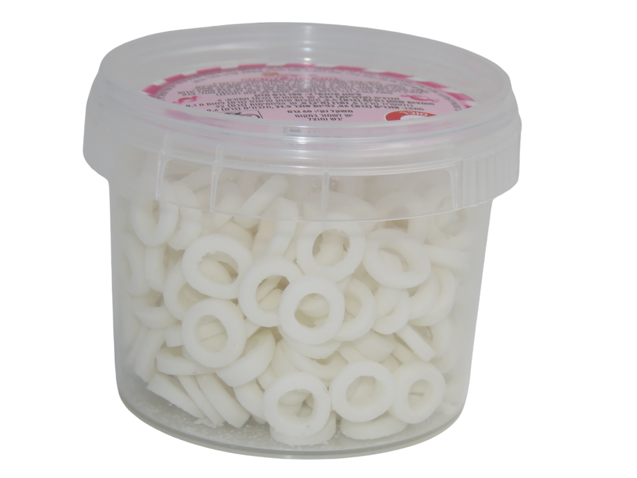 סוכריות חישוקים בצבע לבן לקישוט עוגות ושאר דברי מאפה.