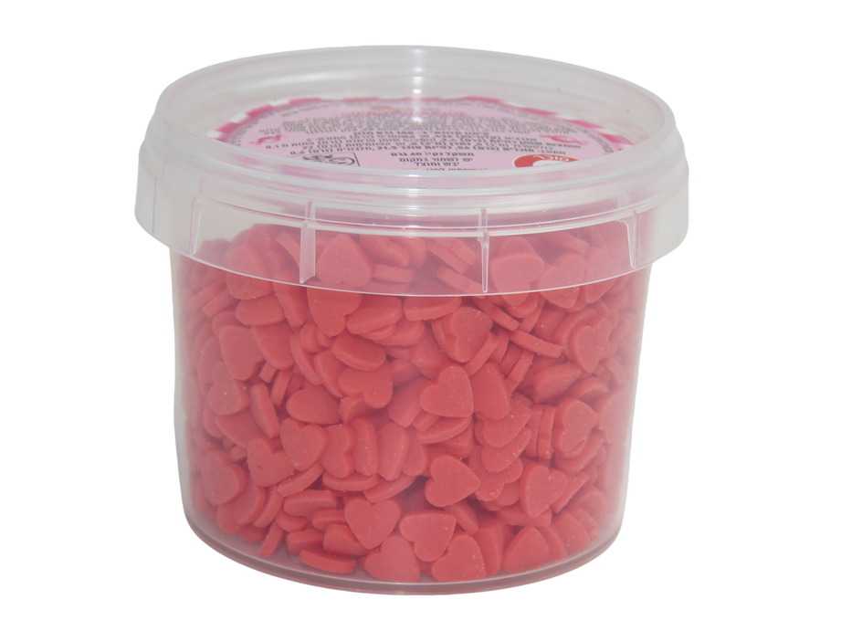 סוכריות בצורת לבבות בצבע אדום לקישוט עוגות ושאר דברי מאפה.