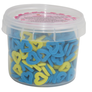 סוכריות לקישוט מסגרת לבבות – כחול צהוב