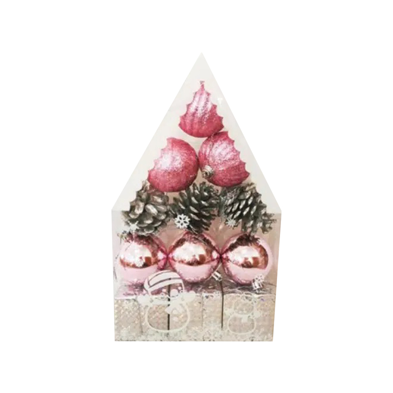 סט אצטרובלים לקישוט העץ בצבע ורוד.
