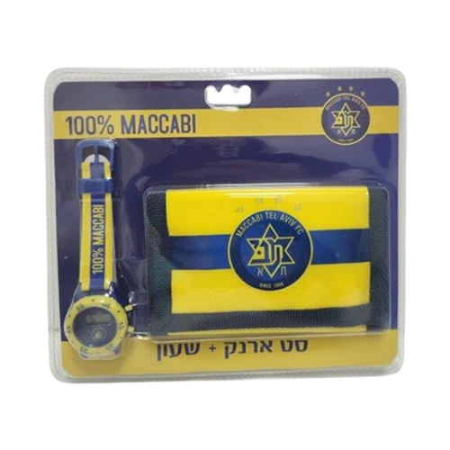 סט ארנק ושעון של המותג מכבי תל אביב.