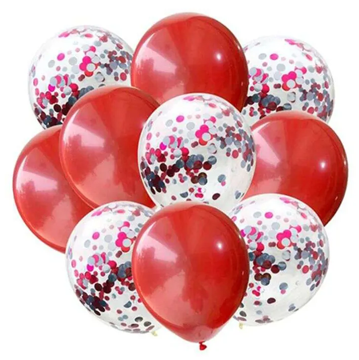 סט בלונים גומי אדום: 5 מטאלי ו-5 קונפטי.