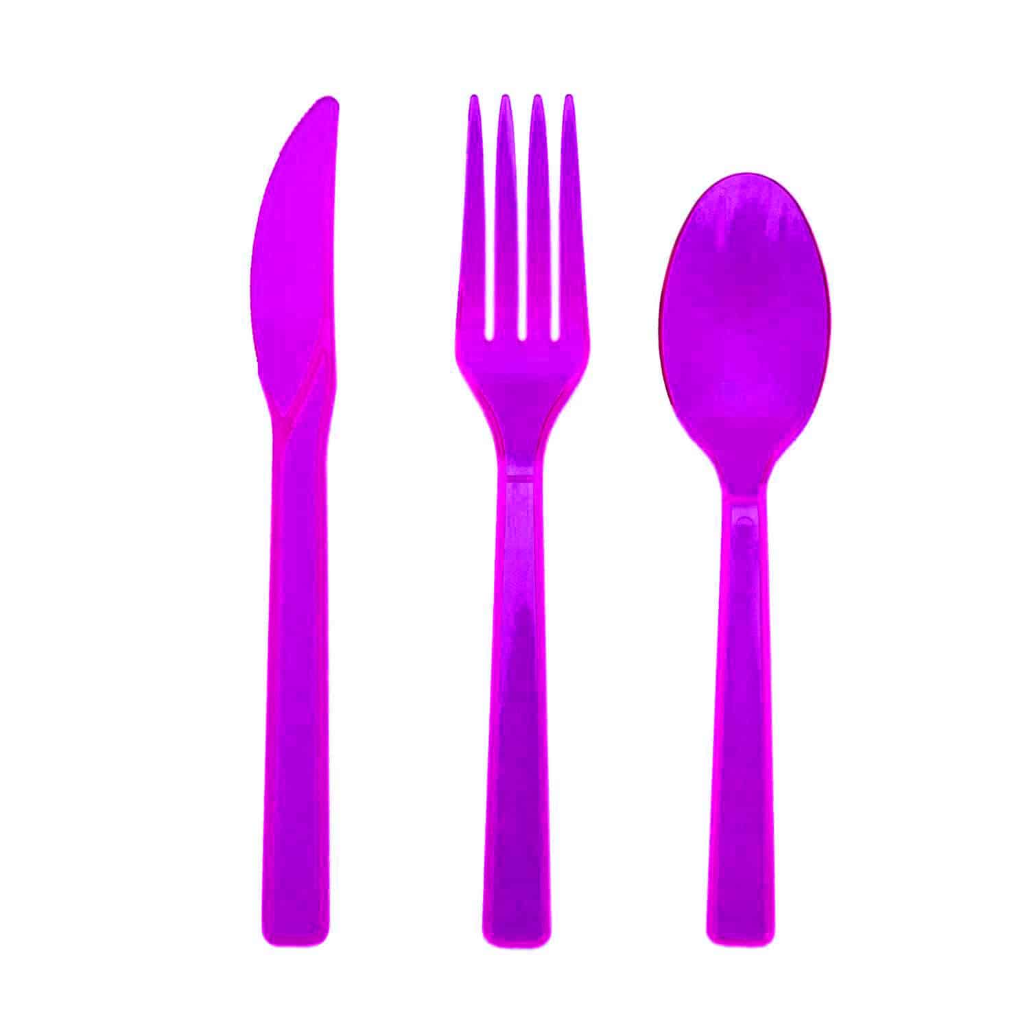 סט סכו"ם פלסטיק בצבע סגול ניאון.