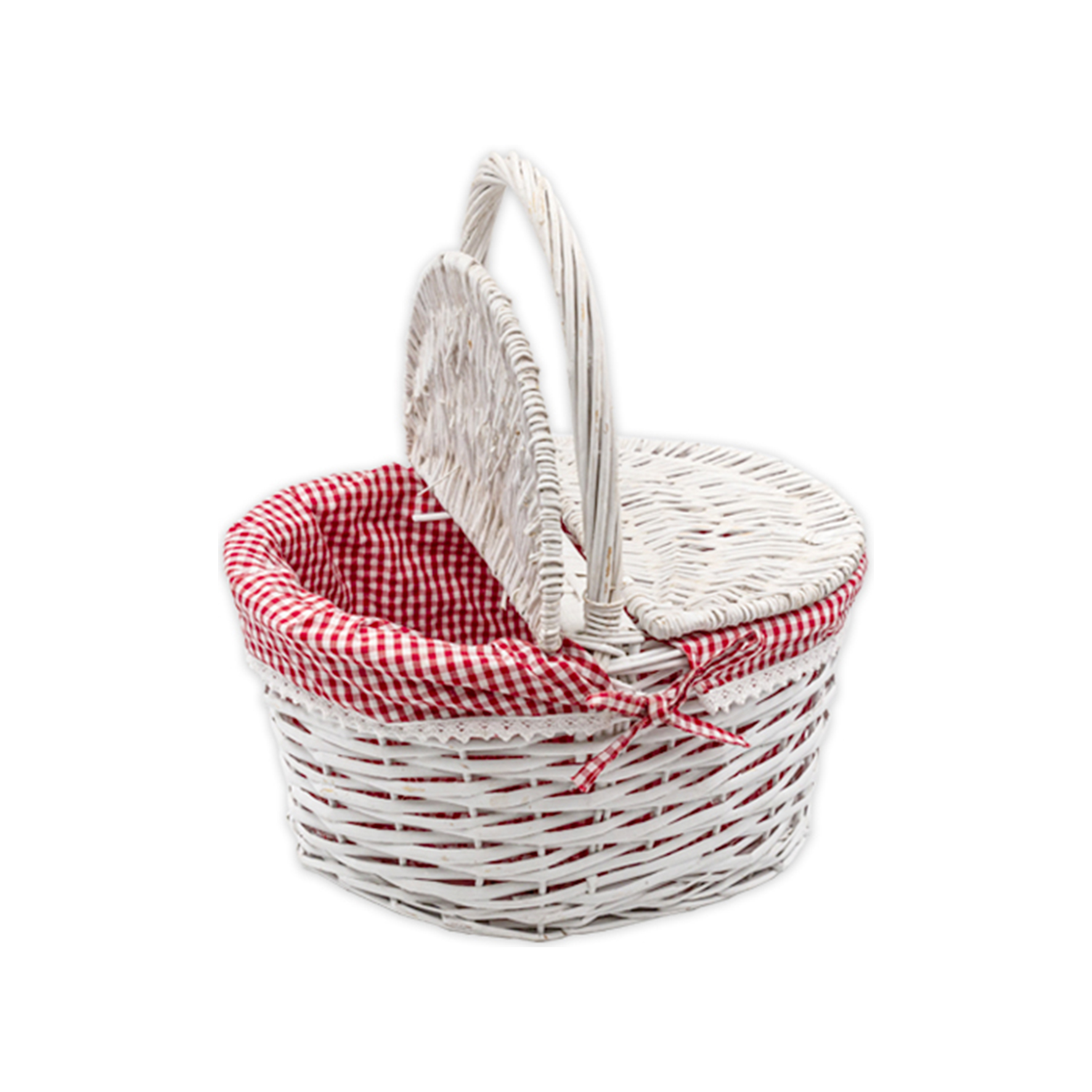 סלסלת קש פיקניק לבנה עשויה מחומר ווילו חזרה ואיכותית.